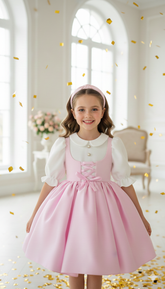 Adelina Vintage Pink and White Structured Dress for Girls – Classic Boutique Style