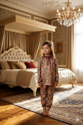 Handcrafted with artisan devotion in our atelier, this pajama set is designed for the girl who loves sophisticated comfort. Made from a premium cotton-polyester blend, the fabric offers the perfect balance of a soft, natural feel and lasting durability. The timeless button-down shirt and trousers are beautifully elevated with luxurious velvet trim accents, adding a touch of winter-garden opulence to the design.