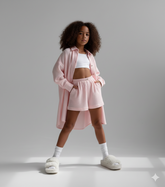 Defne Pink Muslin Casual Set for Girls – Oversize Shirt and Shorts